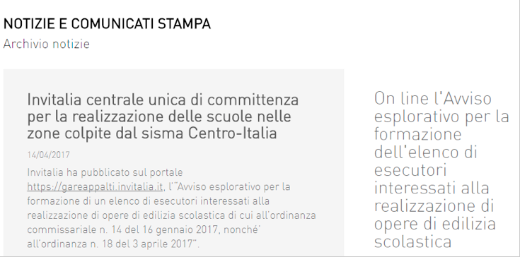 Sapete chi è la “centrale unica di committenza per la realizzazione delle scuole nelle zone colpite dal sisma Italia centrale”? Ovviamente Invitalia.